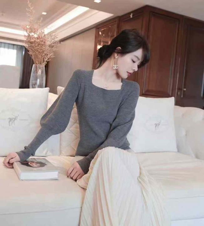 秋冬新款韩系方领净版简约包芯纱套头毛衣,独立包装,...