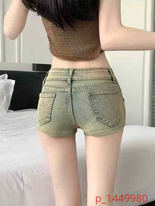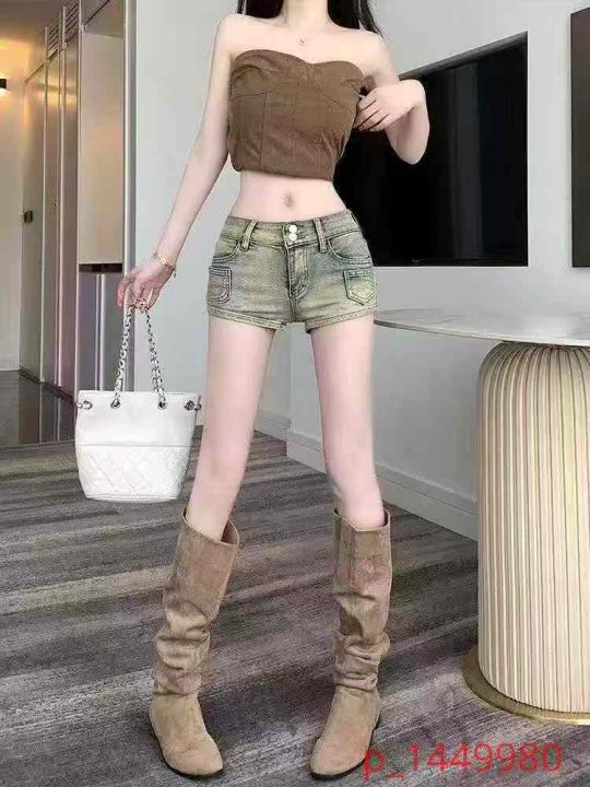 夏季新款高弹力复古做旧辣妹性感牛仔短裤,独立包装带...