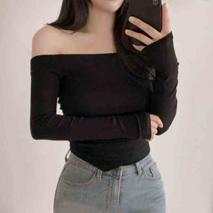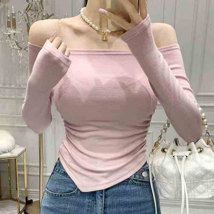 早秋新款纯欲风高级感穿搭气质斜肩长袖包芯纱套头毛衣,独立包装,均码面料...