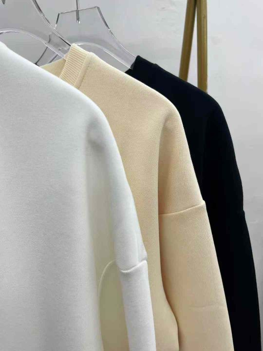 2592件高品质华棉空气层落肩圆领光板卫衣。后领包边,...