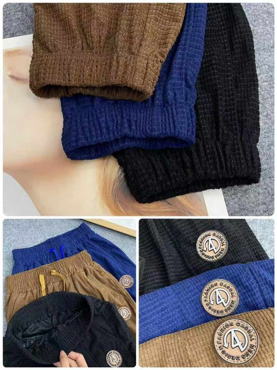 华夫格复古束脚裤428件8.9,抽绳松紧腰,前后有口袋,...