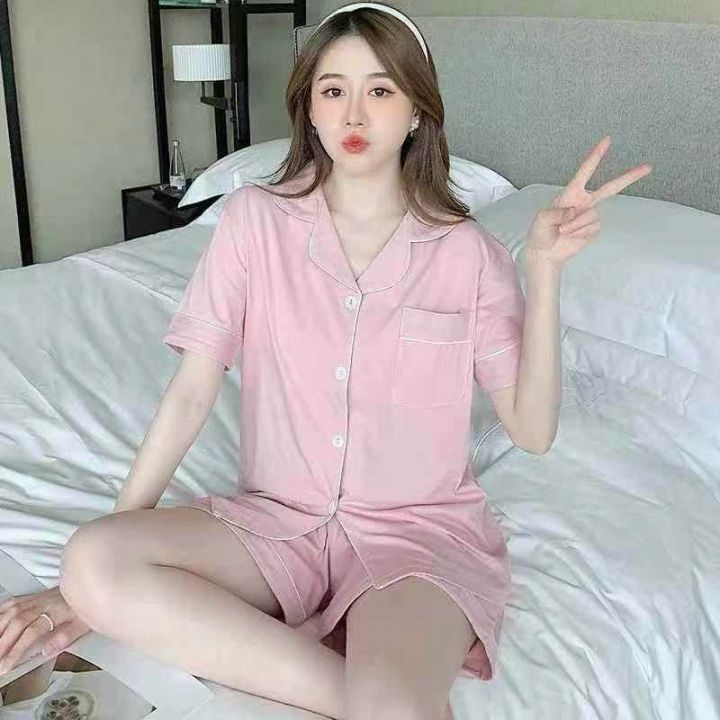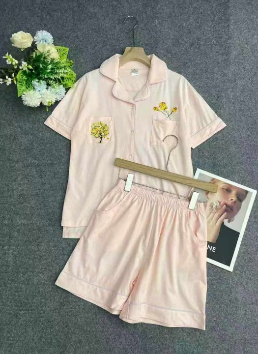 448套纯棉刺绣居家休闲套装。整款两个色,上衣不对称...