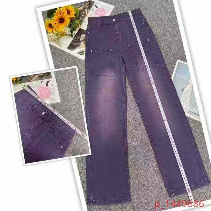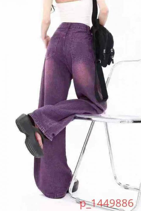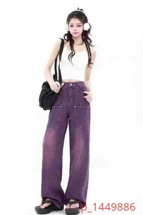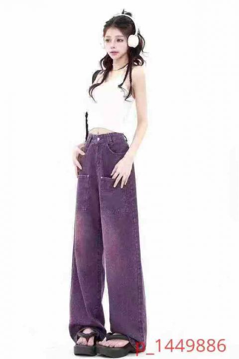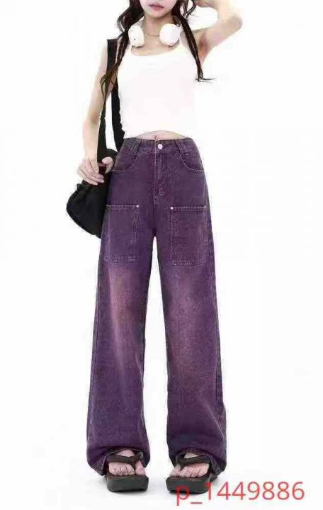 秋季新品洗水棉美式复古紫色宽松显瘦垂感直筒阔腿牛仔裤,独立包装带吊牌,码数S- 2XL码, 312件, 全清9.9元超低价秒杀!分货加一! _@_@