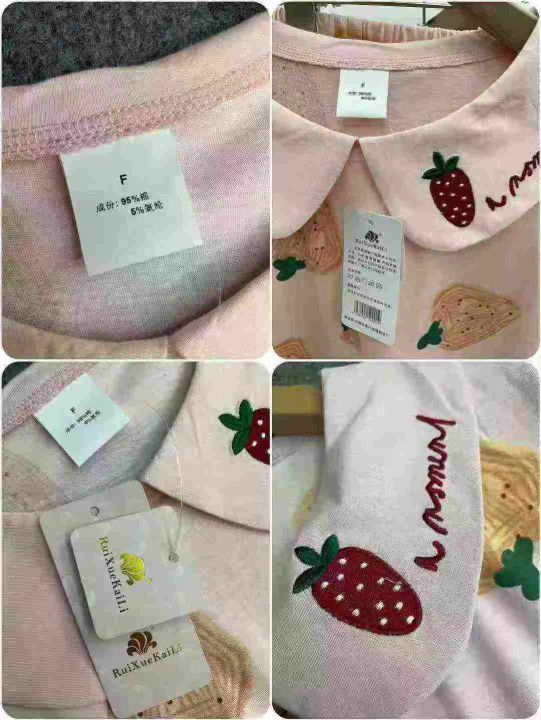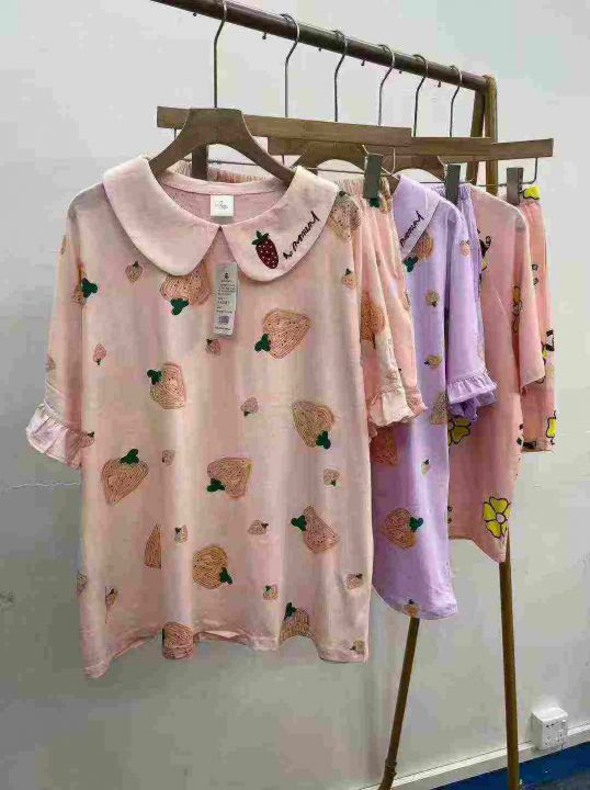 765套娃娃领刺绣印花休闲居家服套装。95棉,面料柔软舒适,品质好。F码(均码)可穿到125斤左右(模特图仅供参考)全清7.8分货➕1