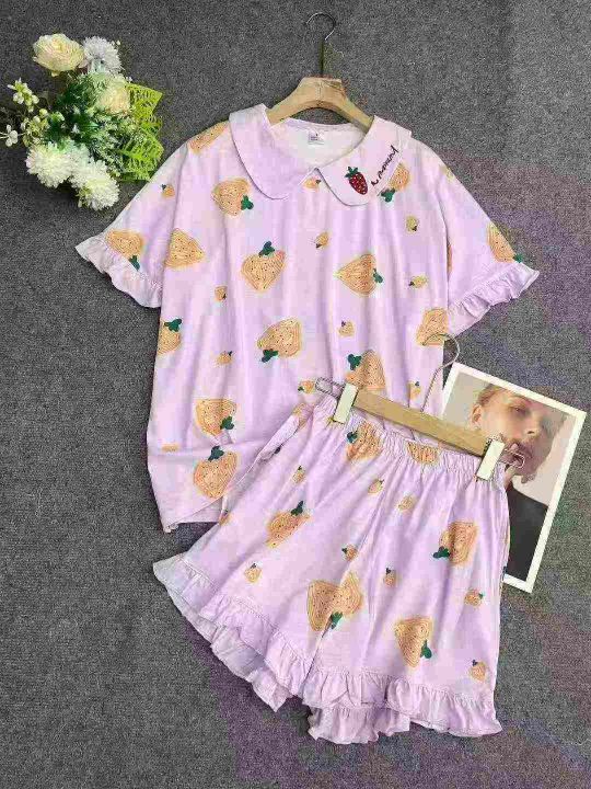 765套娃娃领刺绣印花休闲居家服套装。95棉,面料柔软...