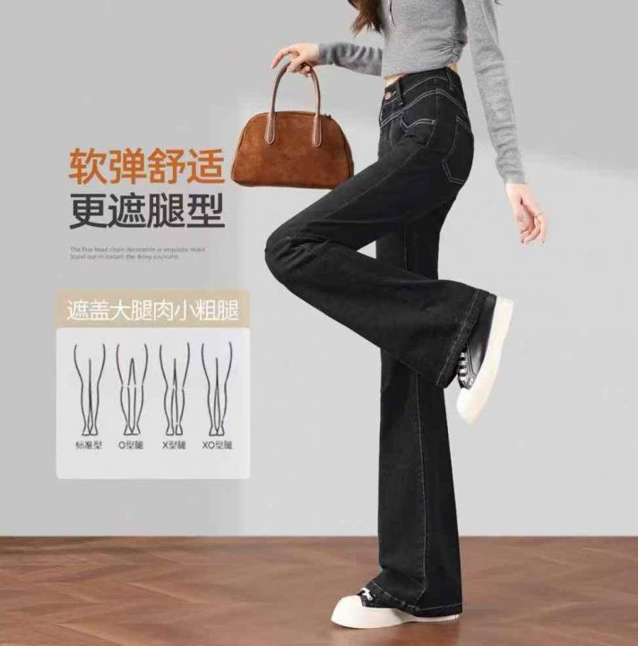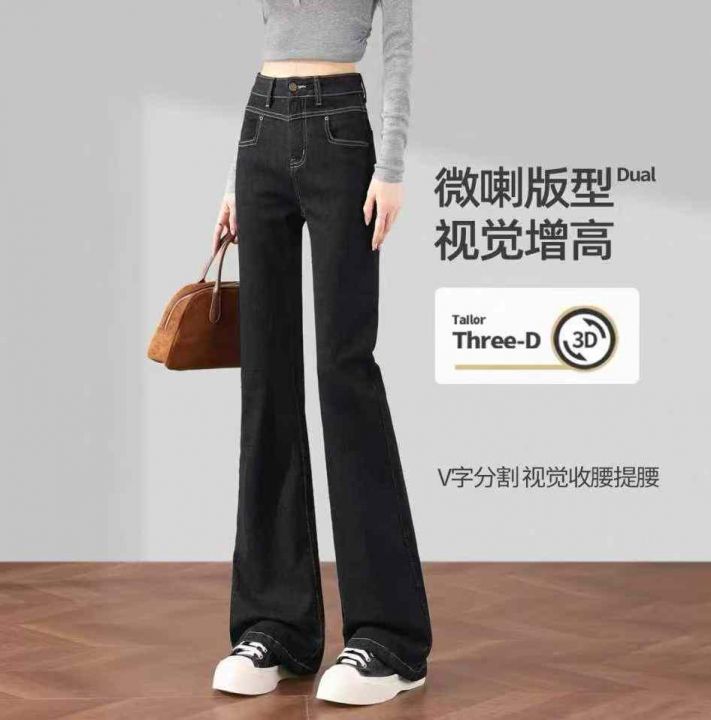 秋季新品洗水棉大码女装复古微喇叭牛仔长裤,独立包装...