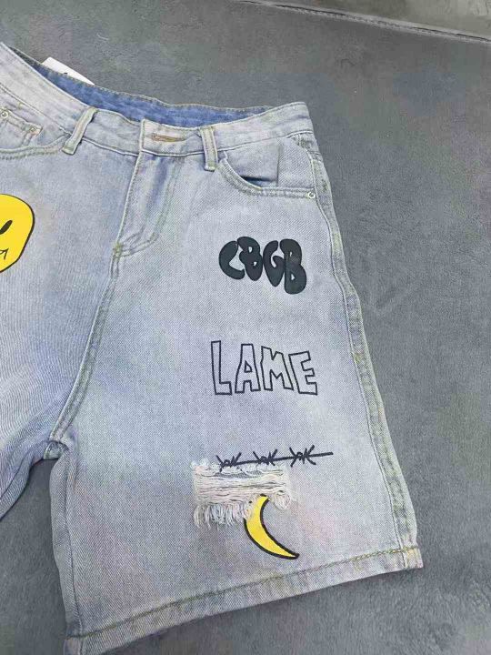 6.8元打包,印花涂鸦宽松五分裤女2025夏季新款女装牛仔短裤薄款休闲牛仔短裤,独立包装,S-L码,196条左右