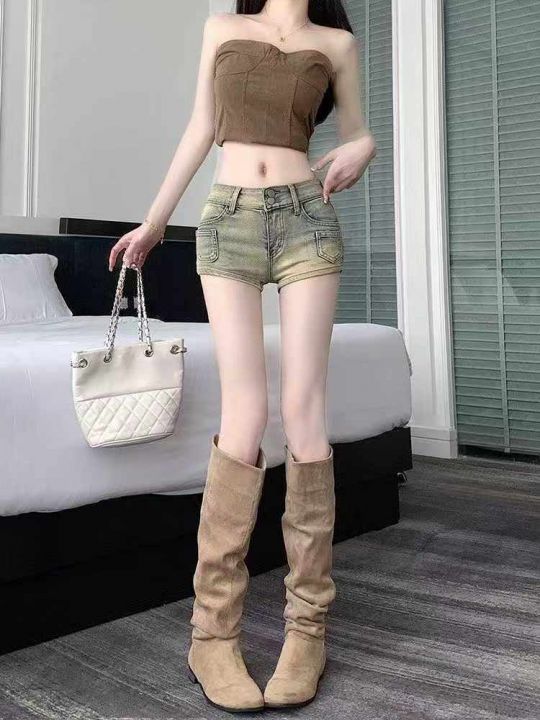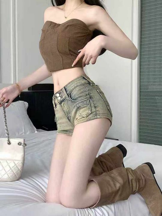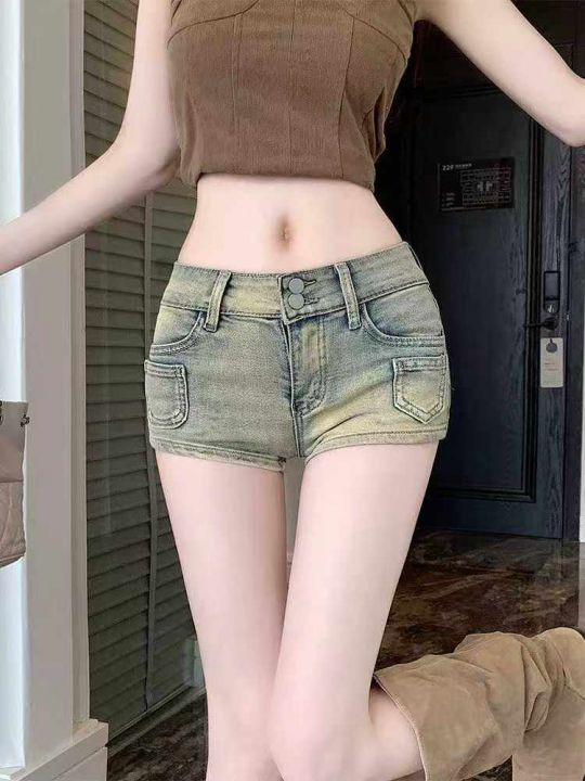夏季新款高弹力复古做旧辣妹性感牛仔短裤,独立包装带...