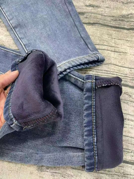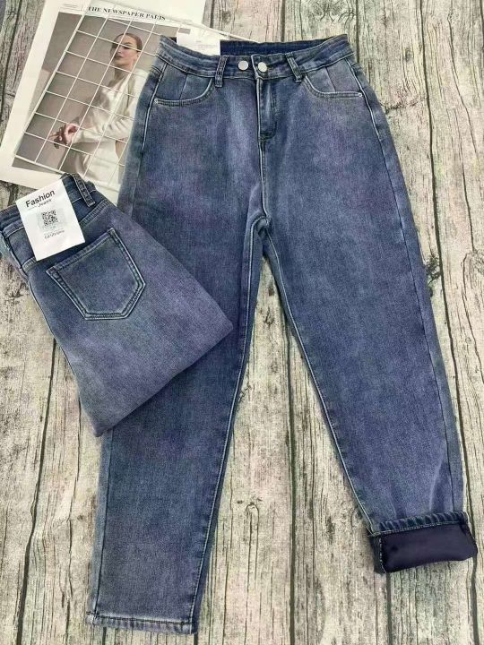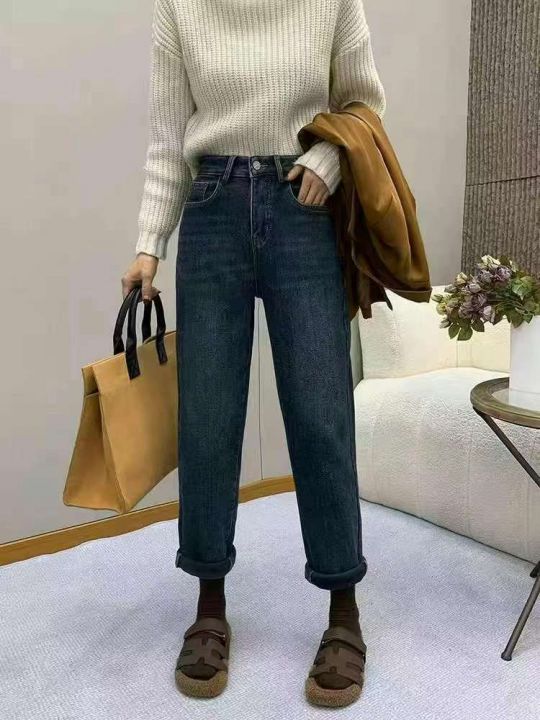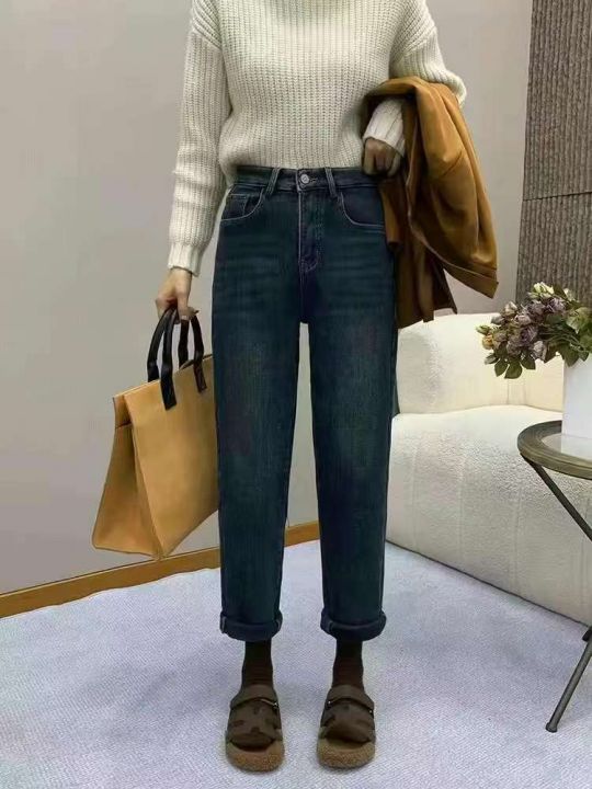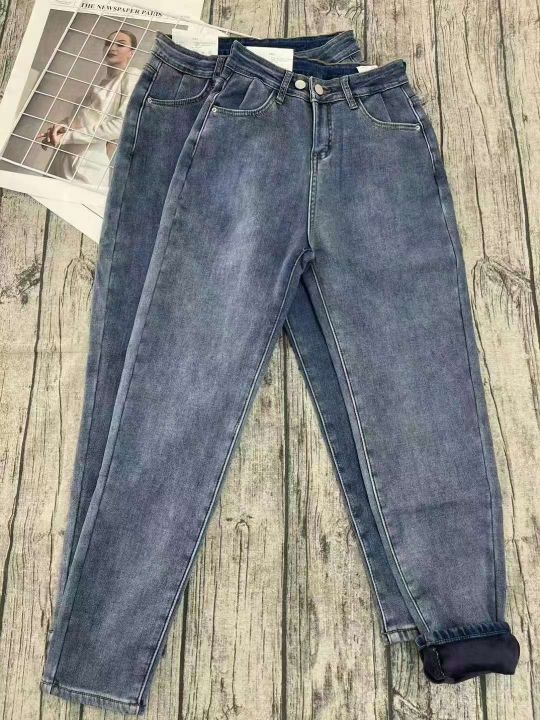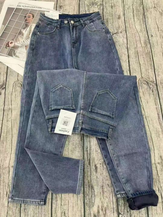高弹力加绒牛仔裤☕️240条全清15.8元,25-31码数,高腰加绒加厚牛仔裤女宽松秋冬新款大码弹力老爹萝卜裤子女潮