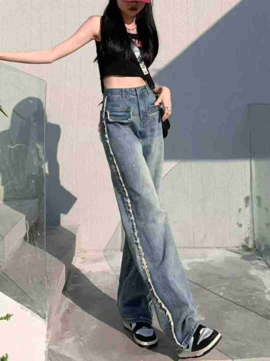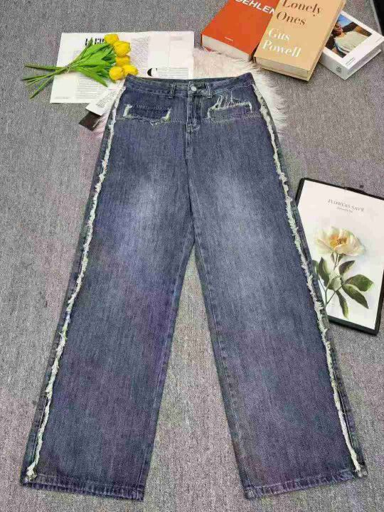 设计感毛边牛仔裤女春秋新款,高腰显瘦百搭阔腿直筒拖地裤,独立包装,数量468条,(带几条杂款)XS-2XL码,分货加1