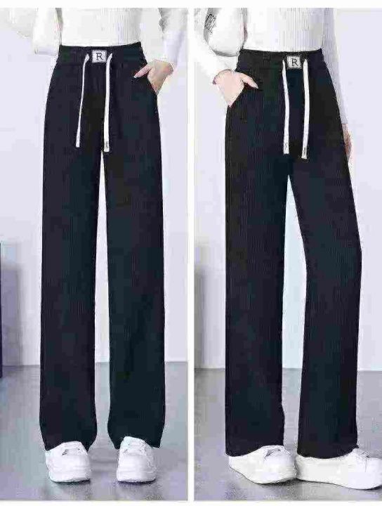 全清价7.9元金丝绒秋冬新款垂坠感高腰显瘦百搭宽松高腰休闲开叉阔腿裤,独...