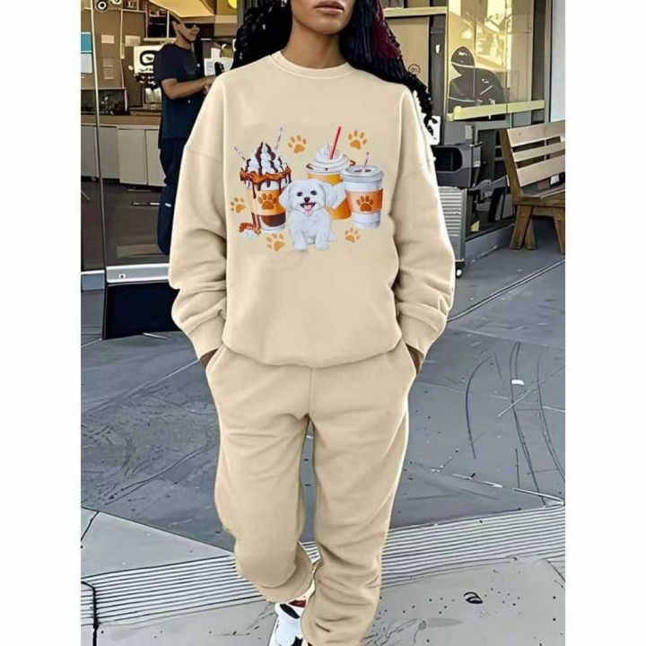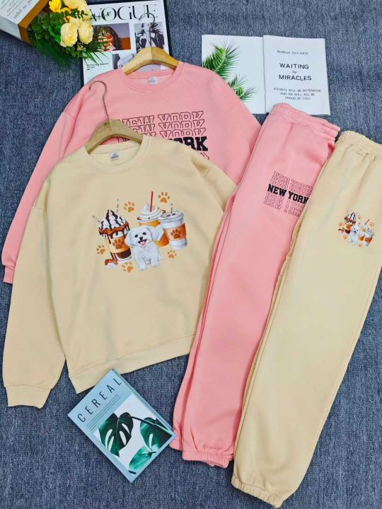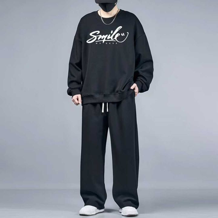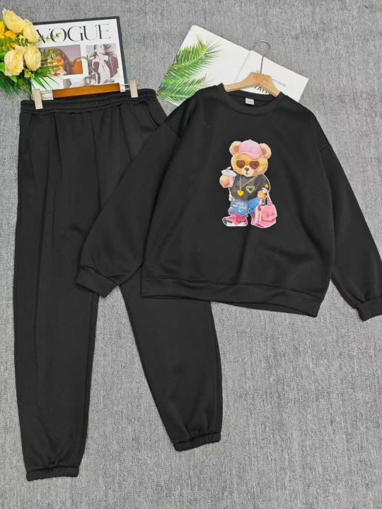 工厂回收2000套外贸宽松大版加绒休闲卡通印花卫衣套装,码数S-2XL。圆领多连帽比较少,版型质量做工都很好,内里加绒,全部独立包装。分货➕1