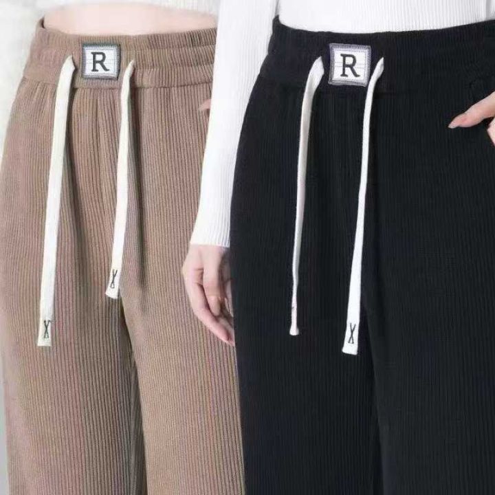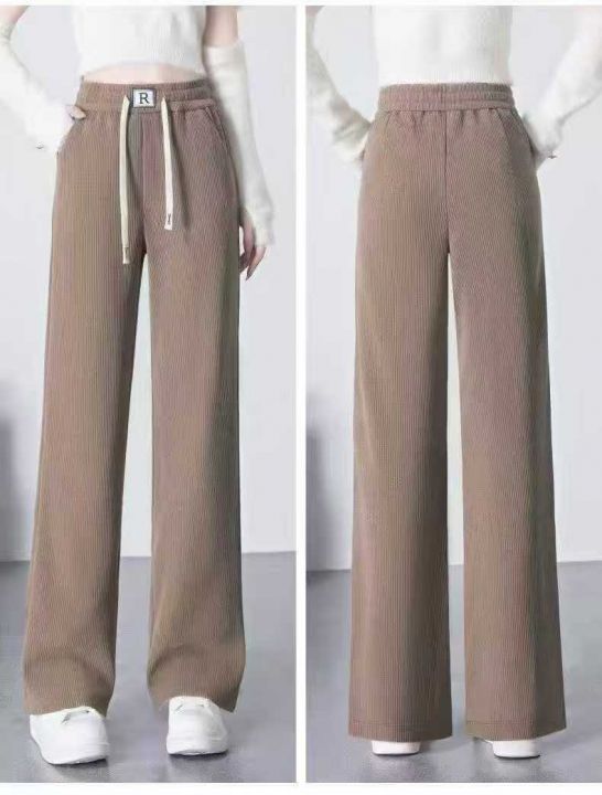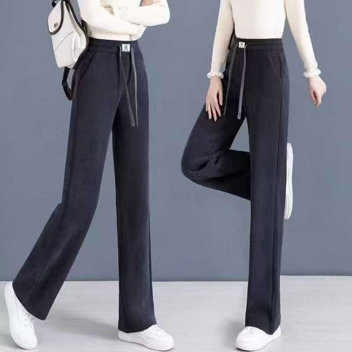 全清价7.9元金丝绒秋冬新款垂坠感高腰显瘦百搭宽松高腰休闲开叉阔腿裤,独...