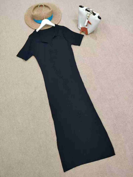 [月亮]:赫本风深V Polo修身包臀针织毛衣连衣裙