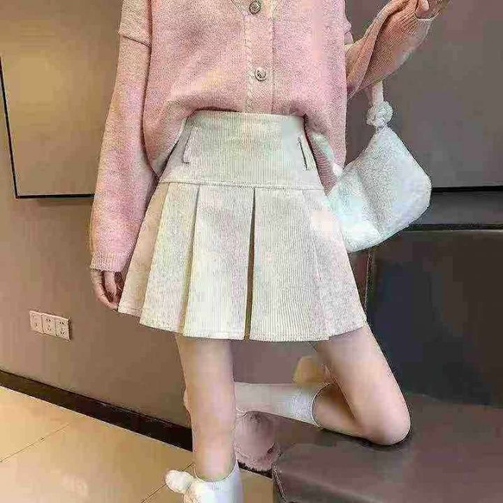 设计感小众a字高腰显瘦短裙复古灯芯绒半身裙秋冬新款百褶裙女装,短裙有内衬,独立包装,两个款,图片色,1-4码,270件左右,5.9元清秒杀