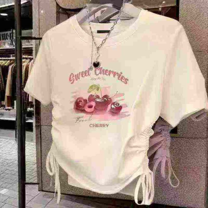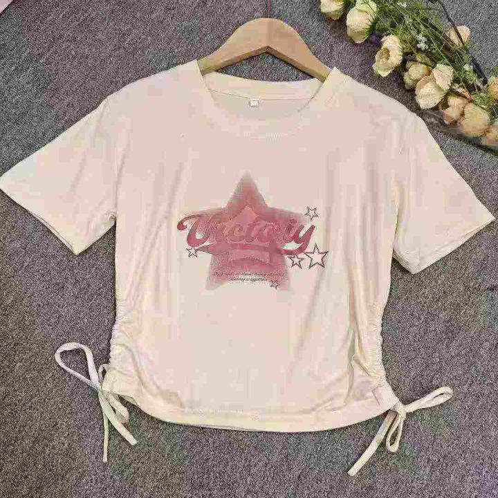 2025夏季辣妹抽绳设计百搭新款短款上衣多巴胺修身收腰短袖t恤女,整款单色两个图案,独立包装,1.3.5码,436件左右,4.9清分➕1