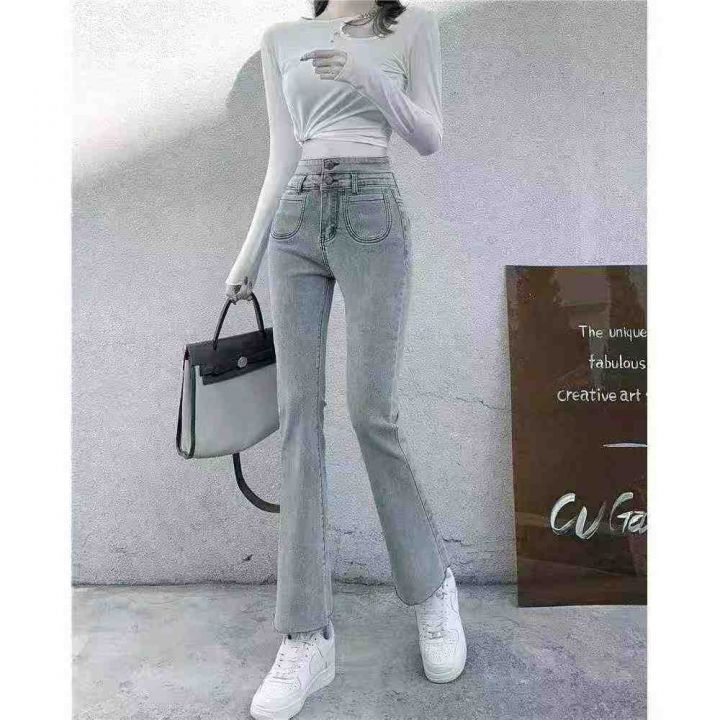 早秋季新品高弹力女装洗水棉毛边微喇叭牛仔裤,独立包...
