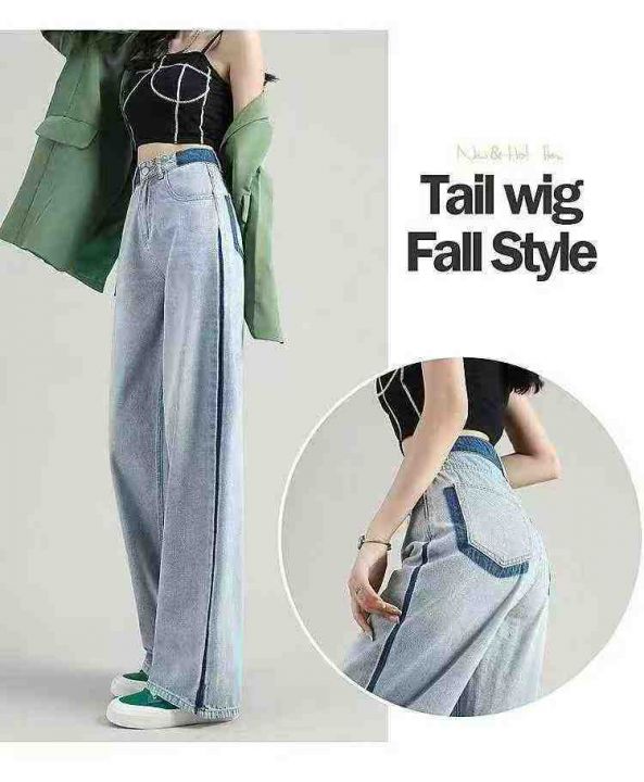 秋季新品洗水棉网红爆款直筒阔腿牛仔裤,独立包装带吊...