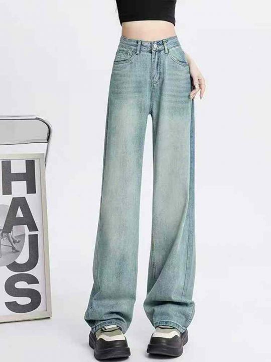 秋季新款高品质高腰显瘦宽松字母刺绣水洗棉直筒阔腿牛...