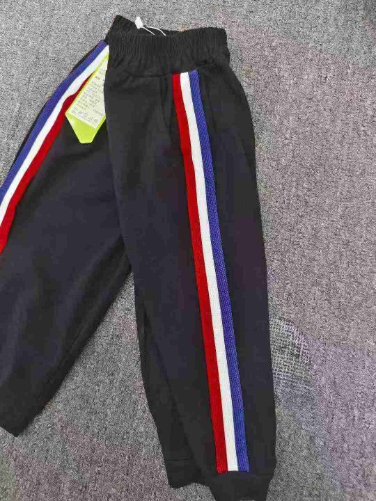 品牌男童女童三道杠条七分裤,数量800件左右,尺码110--160,独立包装带吊牌,货品干净整洁