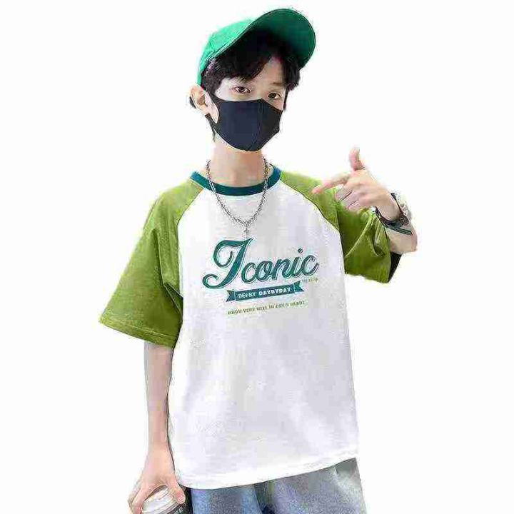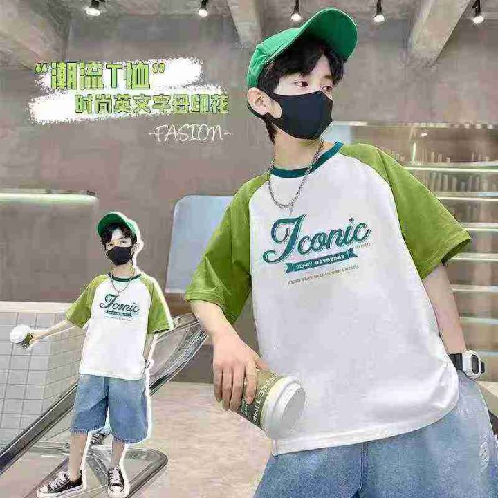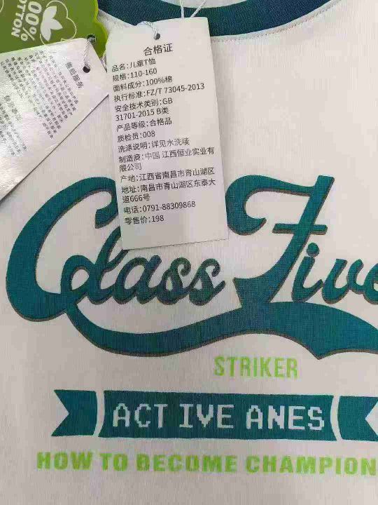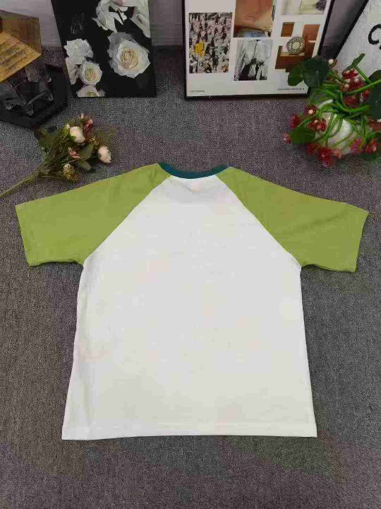 纯棉英文字母印花拼袖童装T恤 数量1000件左右 尺码110--160 整款单色 后领包边 独立包装带吊牌 模特图供参考