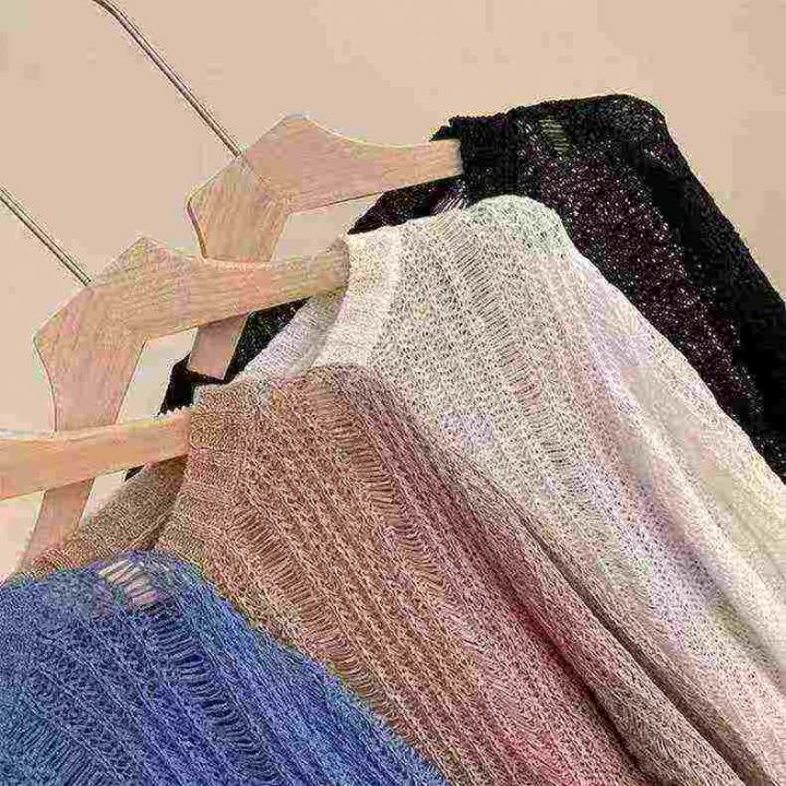 新款镂空上衣配吊带的小外搭韩版纯色宽松设计感长袖针...