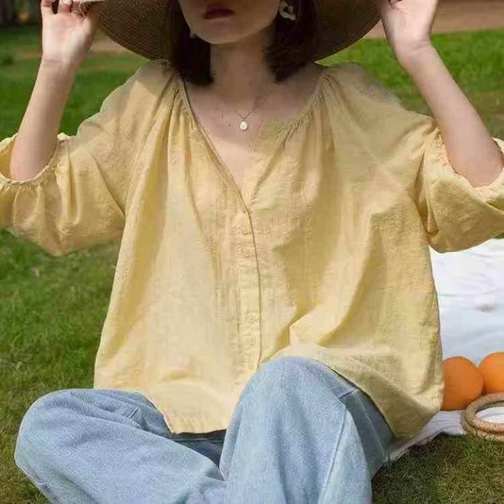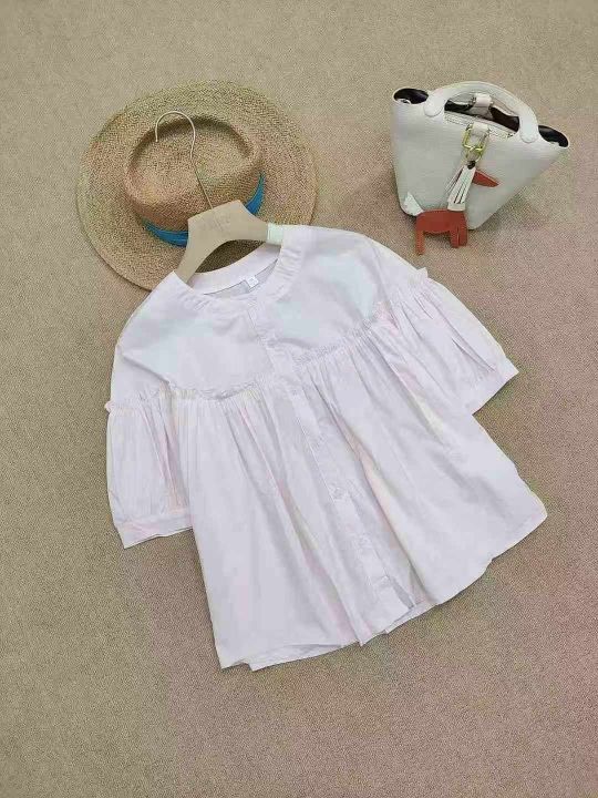[月亮]:轻熟风娃娃风/纽扣开衫短袖衬衫
