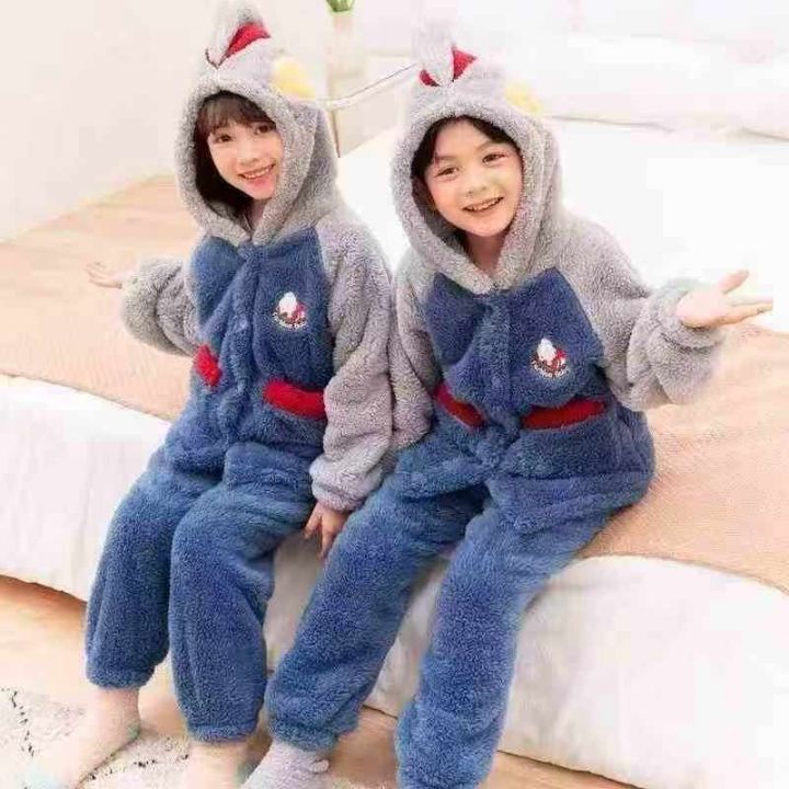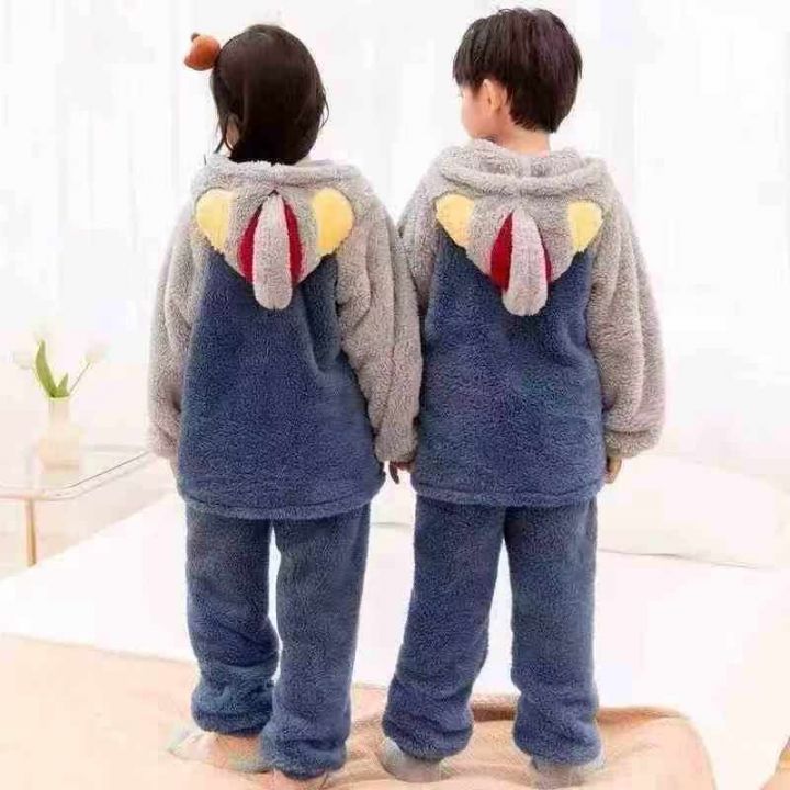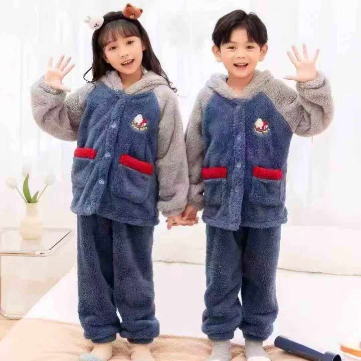 [月亮]:潮童中大童法兰绒连帽纽扣开衫套装
