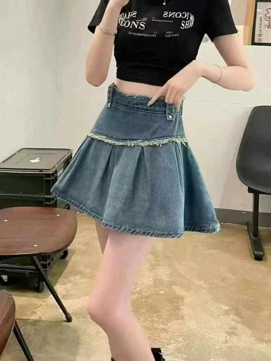 美式辣妹牛仔短裙☕️85条全清8.8元,码数26-30,独立包装,不带内衬高弹力新款显瘦设计感小个子a字高腰牛仔百褶裙