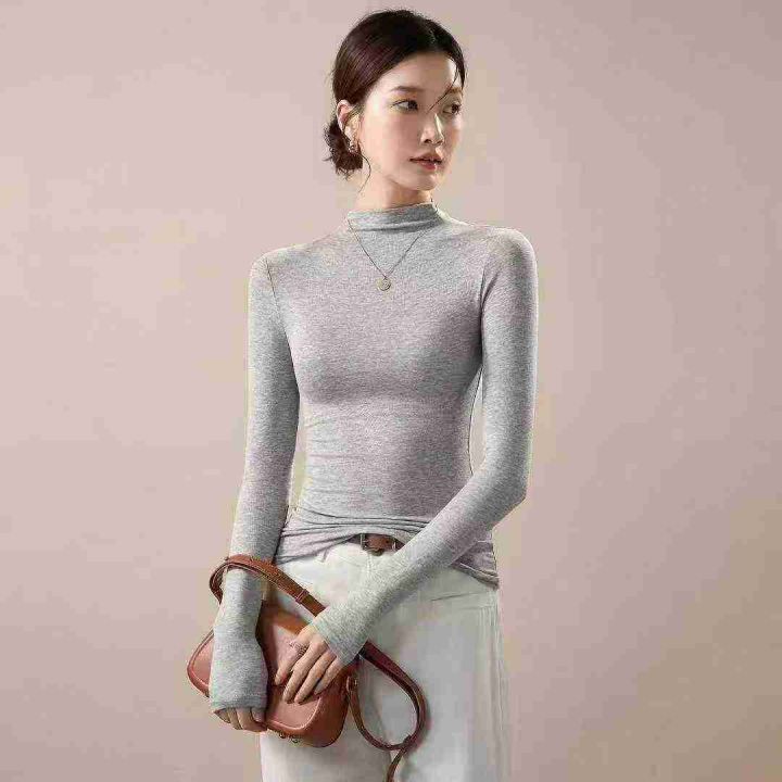 上新全清:7.8一件纯色弹力半高领万能内搭长袖上衣,[...