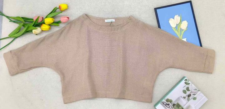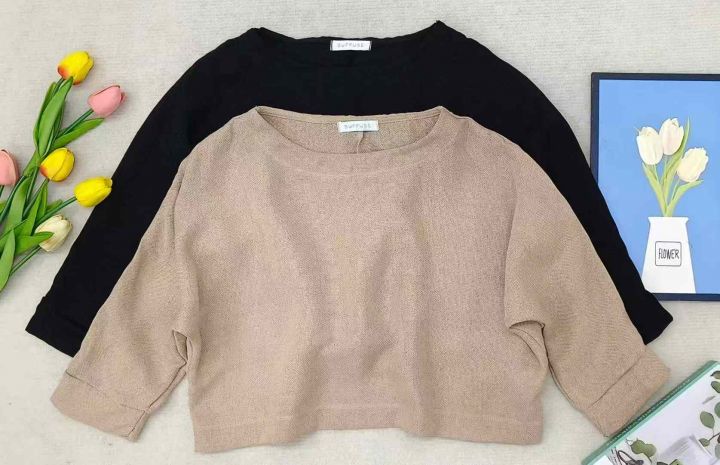 3.8元,韩版辣妹短款宽松蝙蝠中袖一字肩仿亚麻上衣,102件,M一L,独立包装,后领包条,全清3.8元,分货+0.5