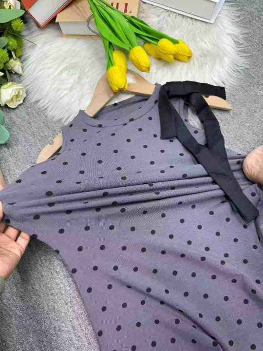 捡漏173件灰色波点时尚辣妹圆领无袖背心纯欲风蝴蝶结开叉不规则上衣,独立包装,码数1-4码,(货号920#68)