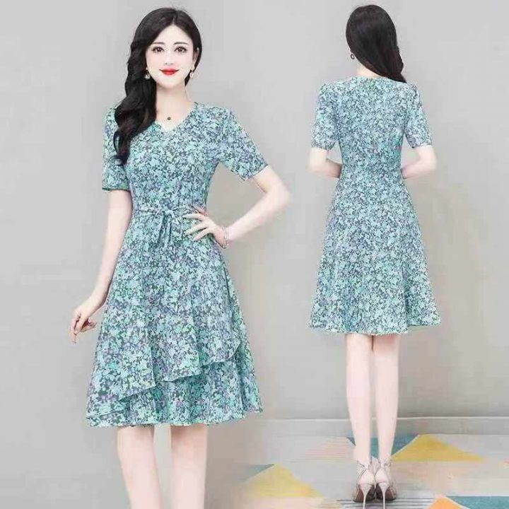 气质连衣裙女2025年新款夏季洋气碎花减龄时尚雪纺短款裙子300件,单款两色,尺码S~4XL.独立包装带吊牌,货品新净,全清福利价12.8元分货➕1