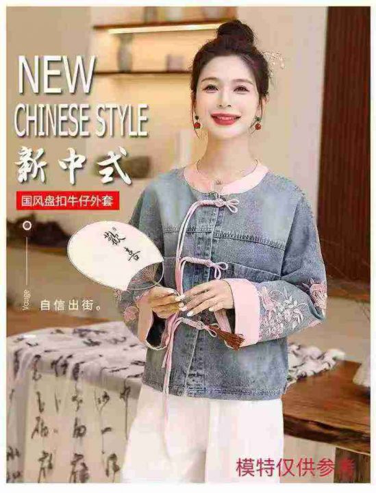 全清价7.8元新中式国风假牛仔宽松洋气百搭盘扣上衣,...