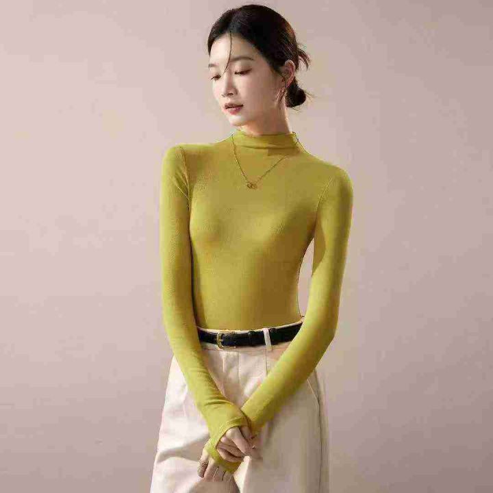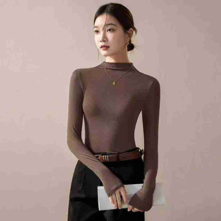 上新全清:7.8一件纯色弹力半高领万能内搭长袖上衣,[...