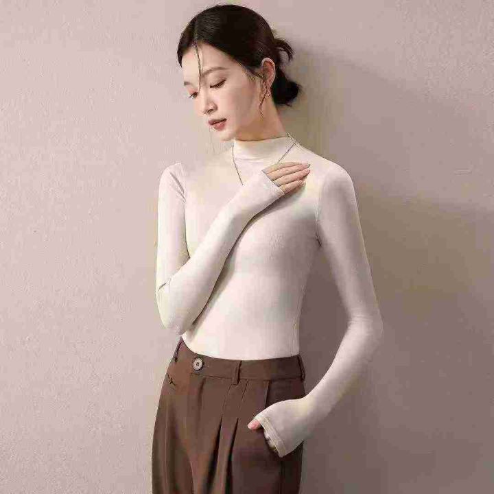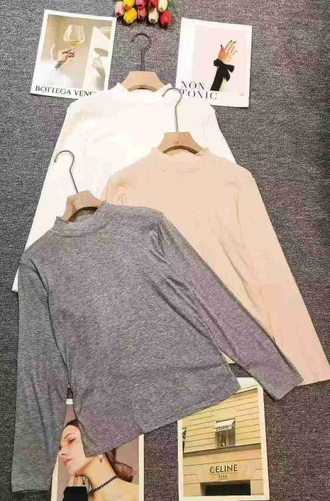 纯色弹力半高领万能内搭长袖上衣,[爱心]180件左右,均码,穿80-140斤,万佳档口货,原包装️无瑕疵,[666]实体店品质,分货加一