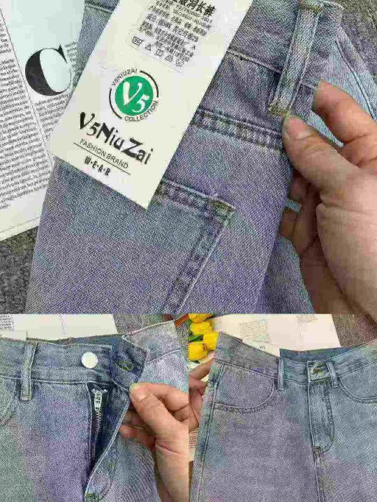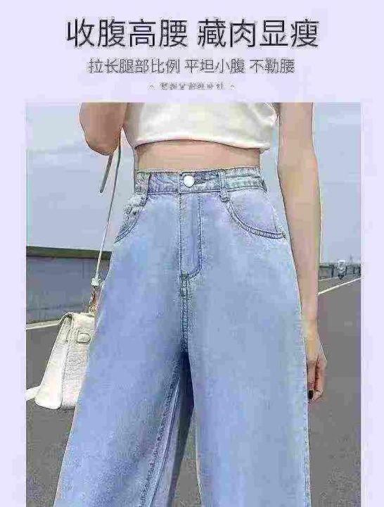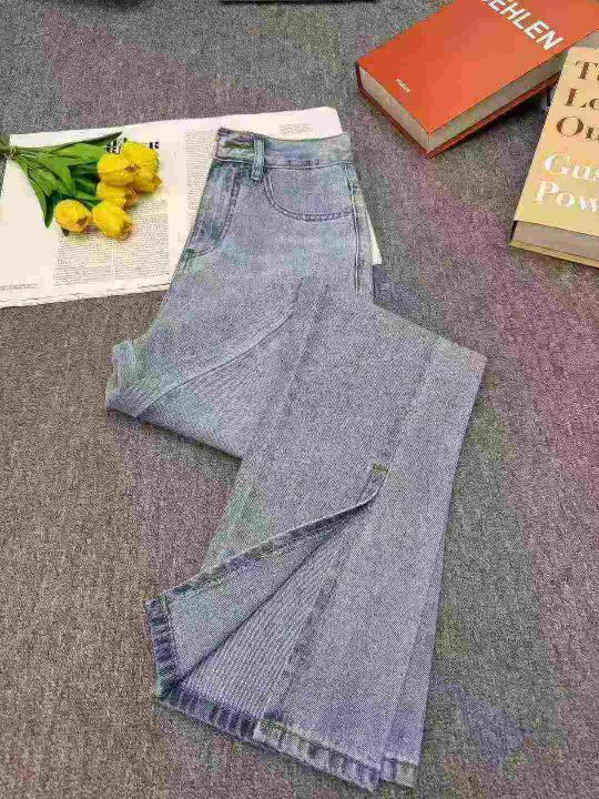 全清9.8垂坠感女装mm宽松显瘦高腰破洞开叉牛仔裤,网络...