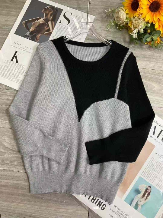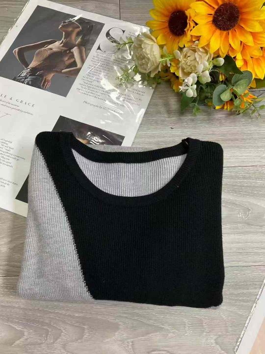 秋季新品宽松显瘦气质撞色假两件圆领包芯纱套头毛衣,独立包装,均码面料柔软舒适弹力大,393件,全清6.9元超低价秒杀!分货加一!