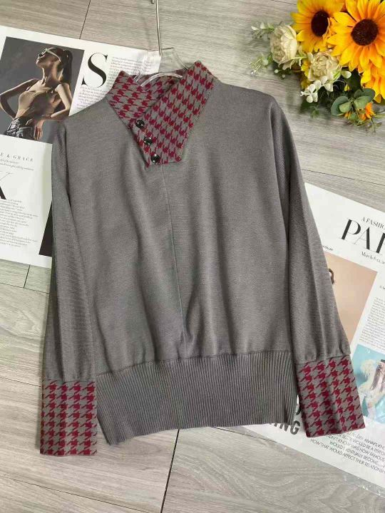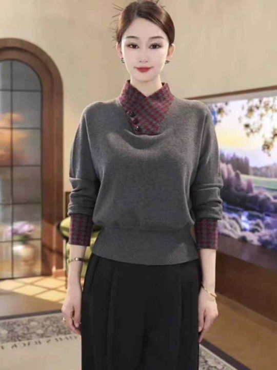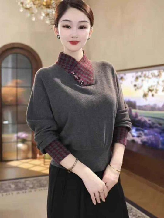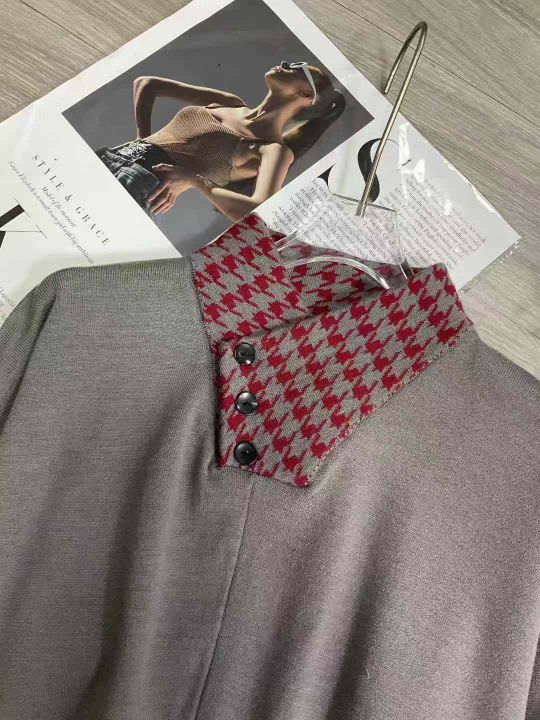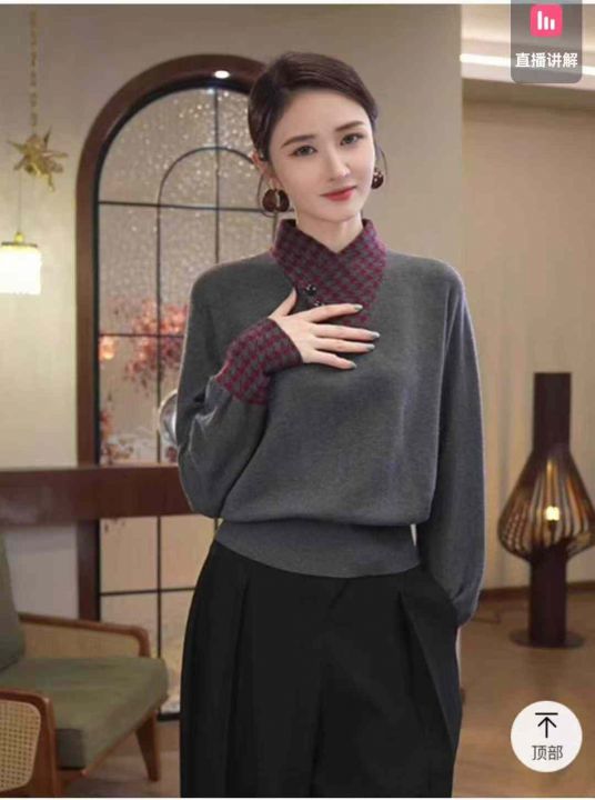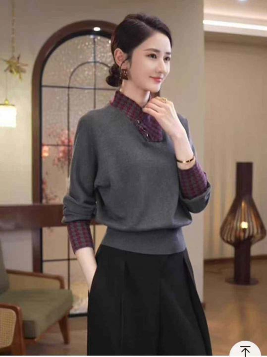 秋季新品假两件赫本风高级感宽松包芯纱套头毛衣,独立...