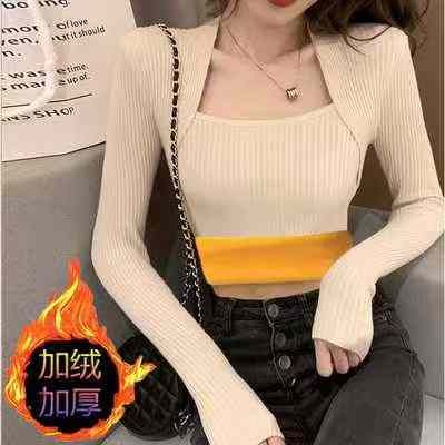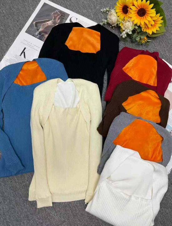 冬季新款加绒加厚方领弹力修身显瘦洋气套头毛衣,独立...