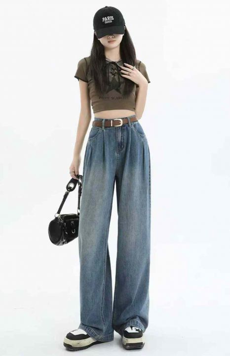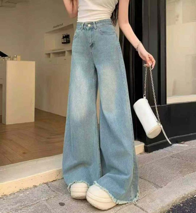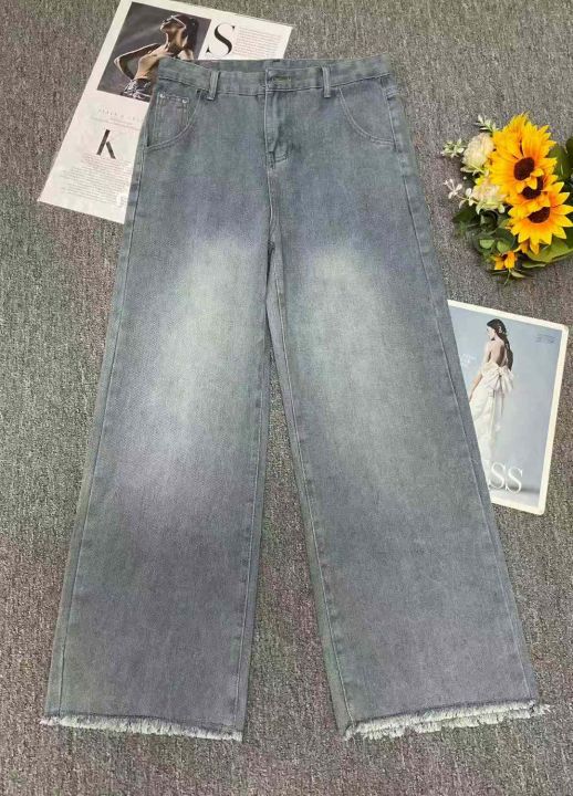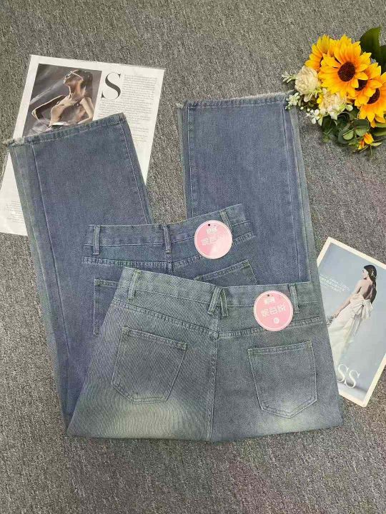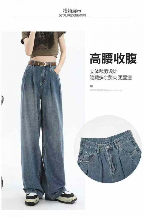 秋季新品洗水棉网红爆款大阔腿牛仔长裤,独立包装带吊...