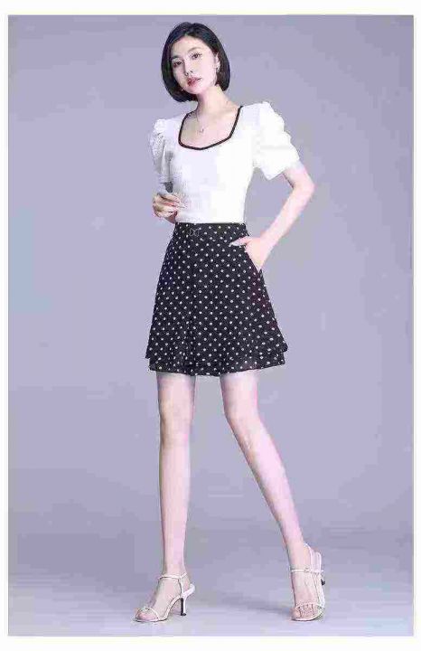 上新全清:3.8一件高腰气质百搭雪纺A字垂感波点裙裤,...