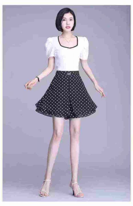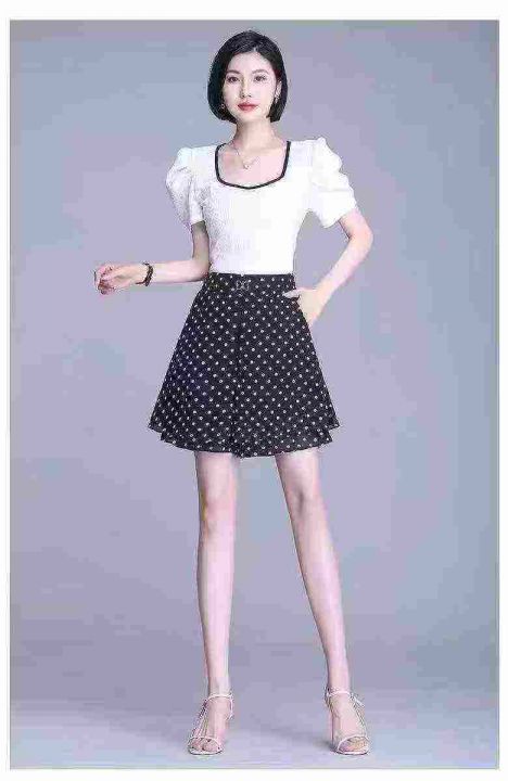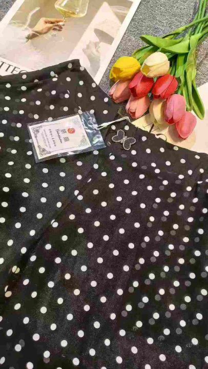 高腰气质百搭雪纺A字垂感波点裙裤,[爱心]400件左右,码数S-4XL,穿80-150斤,万佳档口货,原包装️无瑕疵,[666]实体店品质,分货加一