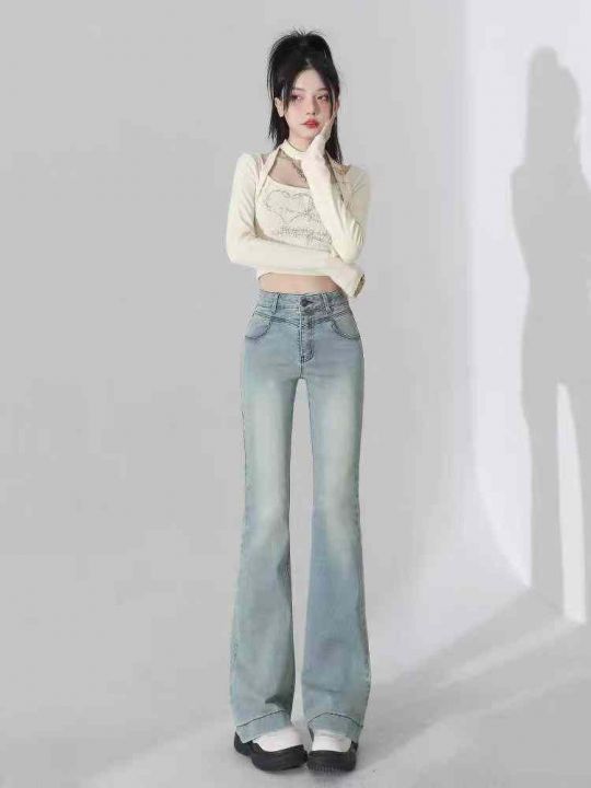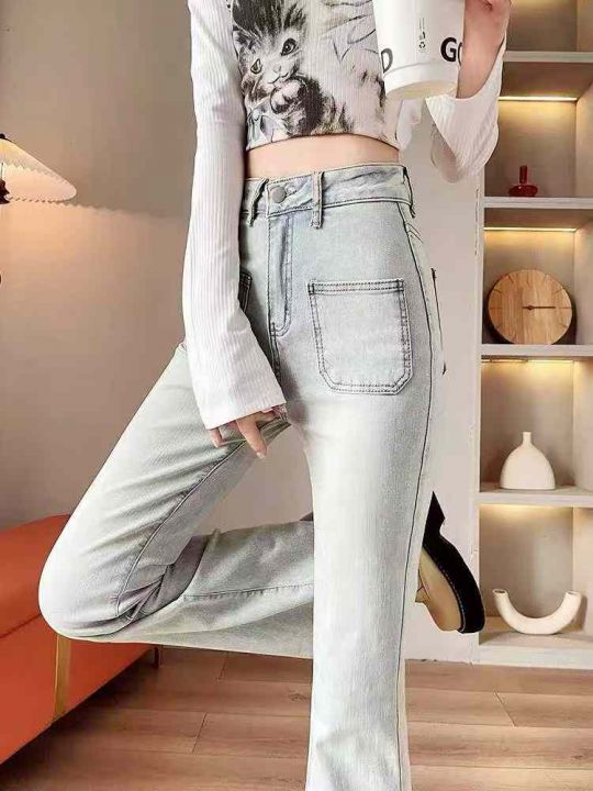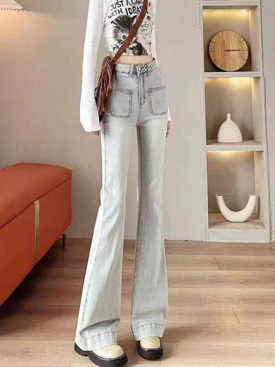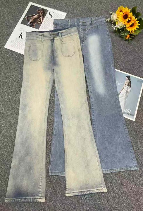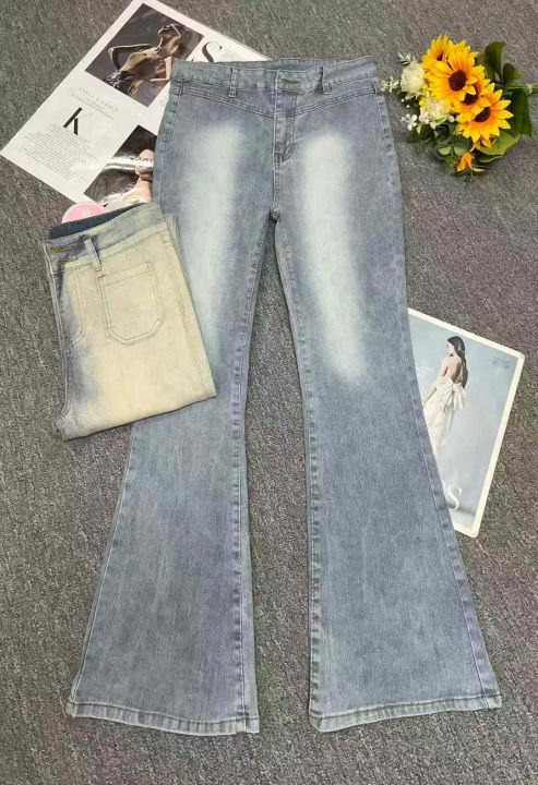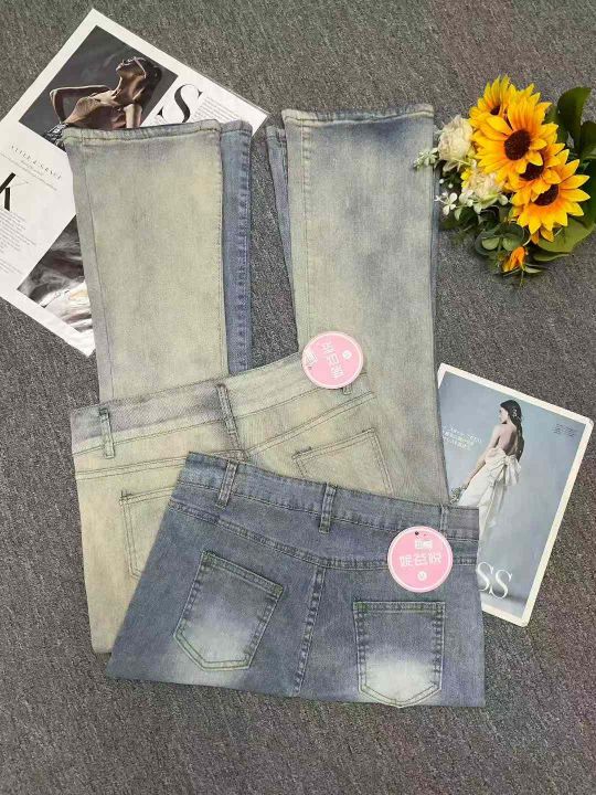 秋季新品洗水棉高弹力复古微喇叭牛仔裤,独立包装带吊...