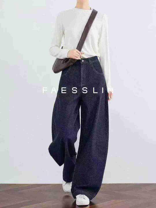 #Jeans wholesale 弯刀牛仔裤女士秋冬半松紧高腰长阔腿裤 宽松镰刀裤,单款...