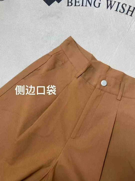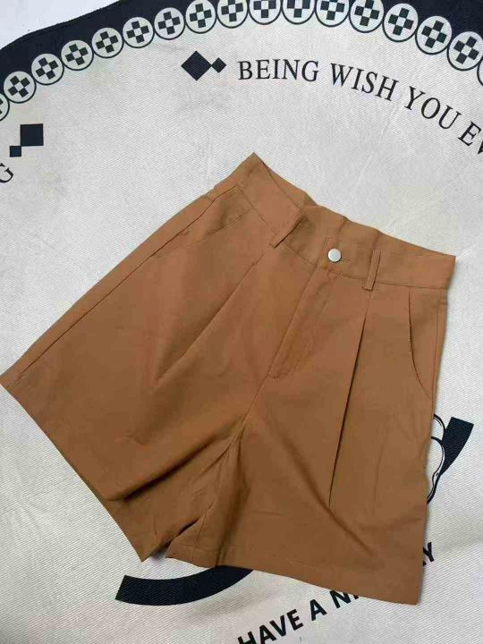 3.9清177件复咖色纯棉高腰西装短裤女款夏季三分阔腿裤...