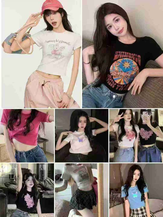 辣妹短袖t恤女夏ins设计感小众纯欲女短款辣妹上衣,小整杂,多图案,大弹力,码数:S-2XL(1-4码),独立包装,1716件,(款号0912#35) 分货➕1