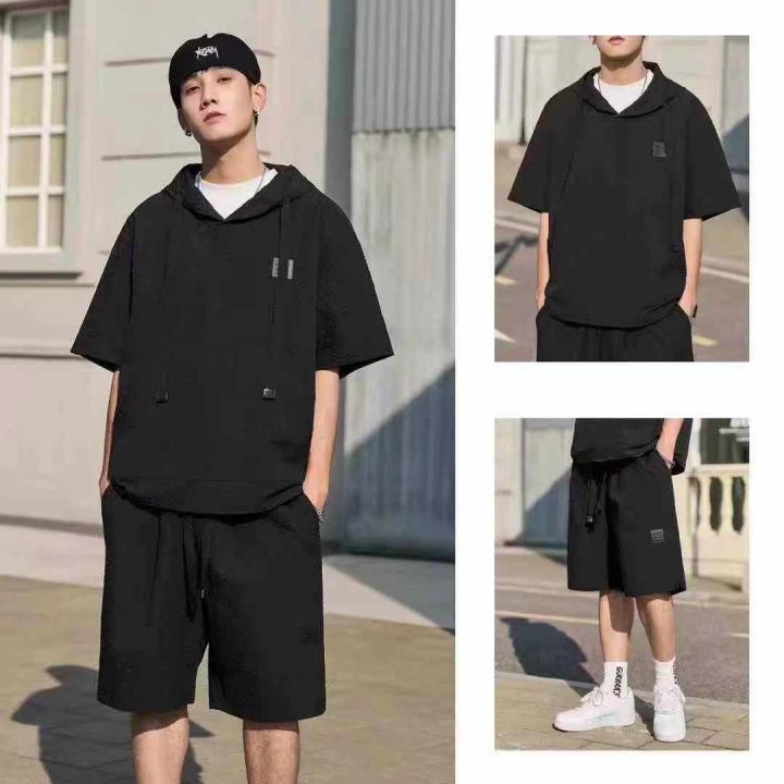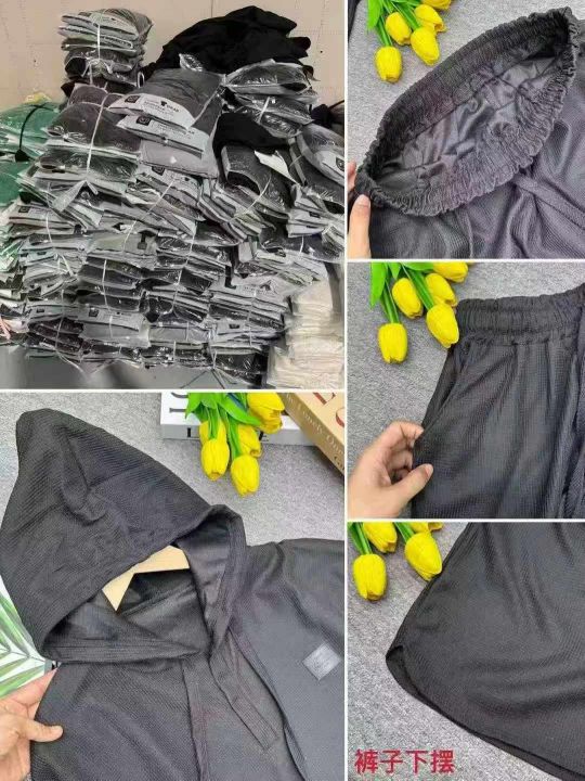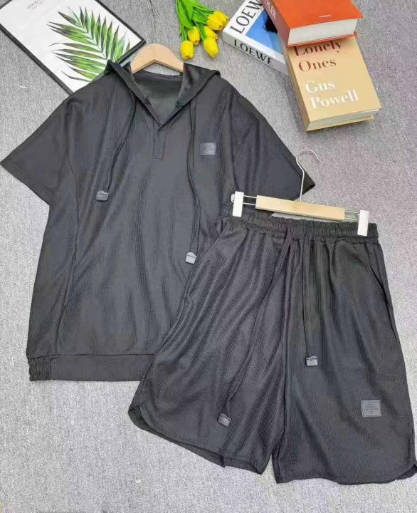 华夫透气舒适面料潮牌男士短袖短裤休闲运动宽松两件套套装,独立包装,单色单款,码数1-6码,数量748件,货号0910#27