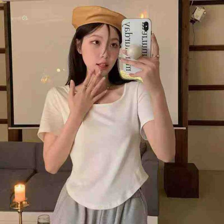 夏天短袖U领辣妹短款韩版修身显瘦锁骨棉t恤,独立包装,码数1-4码,数量202件,大货灰色为主,分货加1,货号927#91