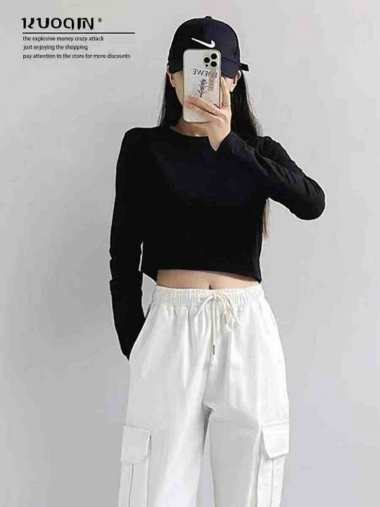 ☕️纯棉辣妹长袖206件全清4.8元,码数s到xxl(1-5码)单款黑色,10件一包装,货品新,新款打底衫女春秋修身长袖T恤纯棉短款内搭高腰露脐上衣潮